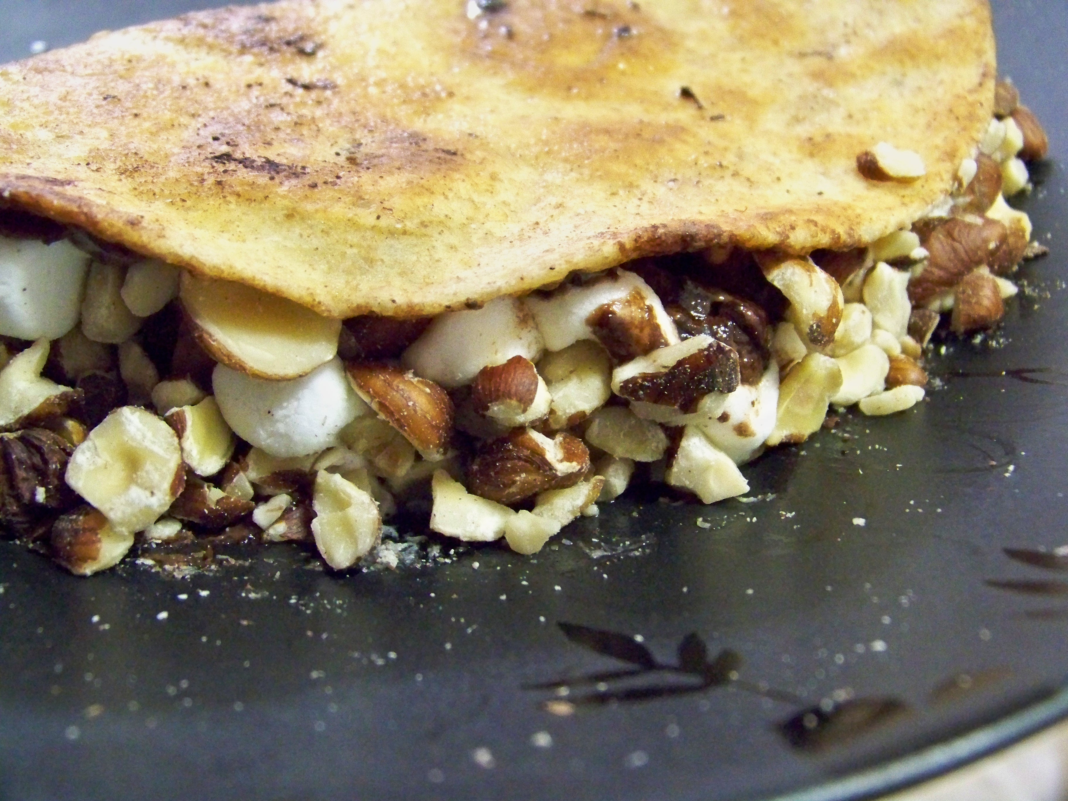 - Cut the tortillas in half, then quickly press the opened sides into the chopped hazelnuts. Serve immediately (for best gooey results).