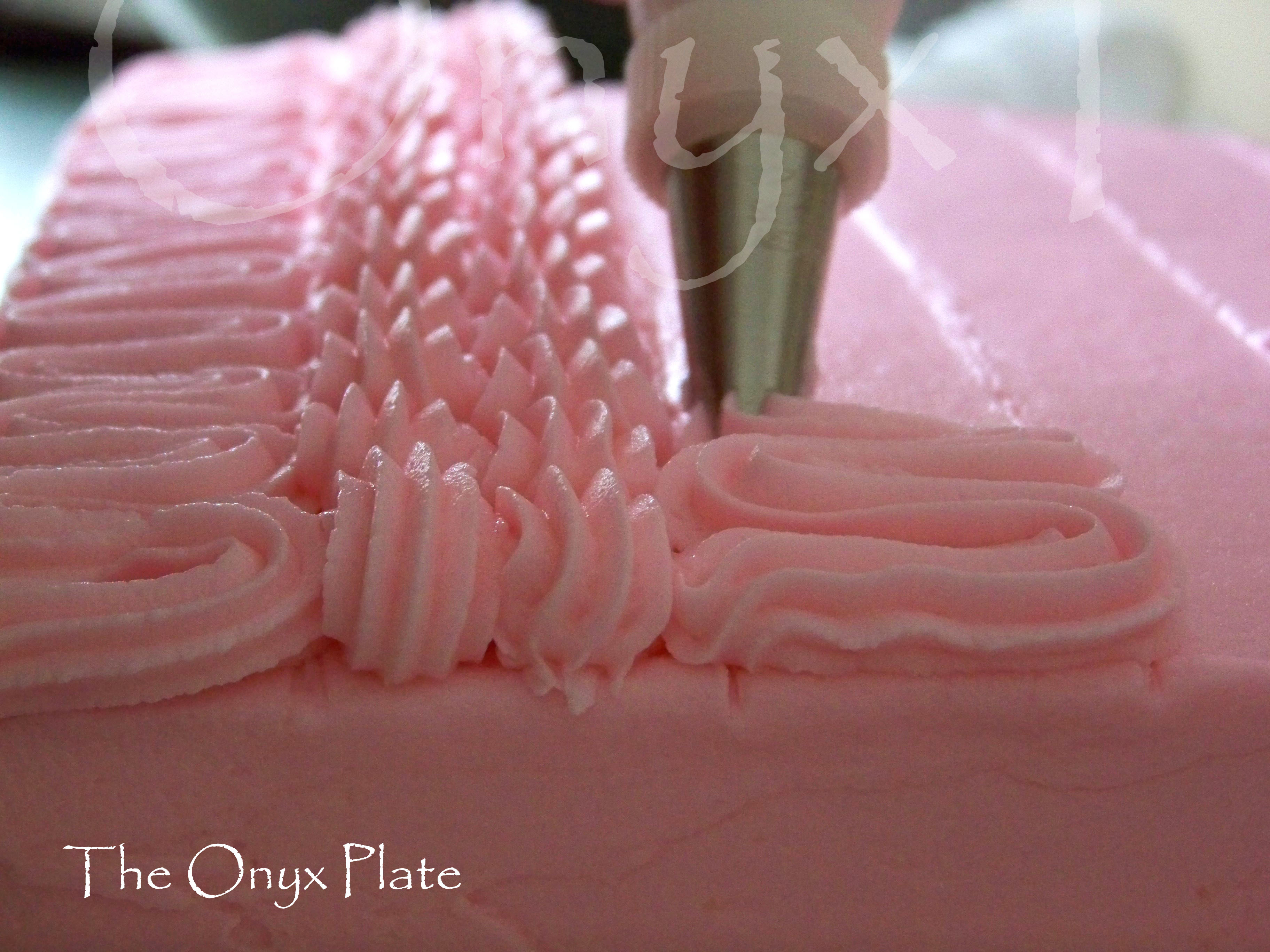 Now that we have the crumbcoat perfected….on with the design! It always amazes me how Mom can keep her hands so steady and make perfectly beautiful designs. My hat goes off to all of our talented bakers and cake makers out there…you guys truly light up our world! My sweet tooth never goes away, so never stop doing what you do best!