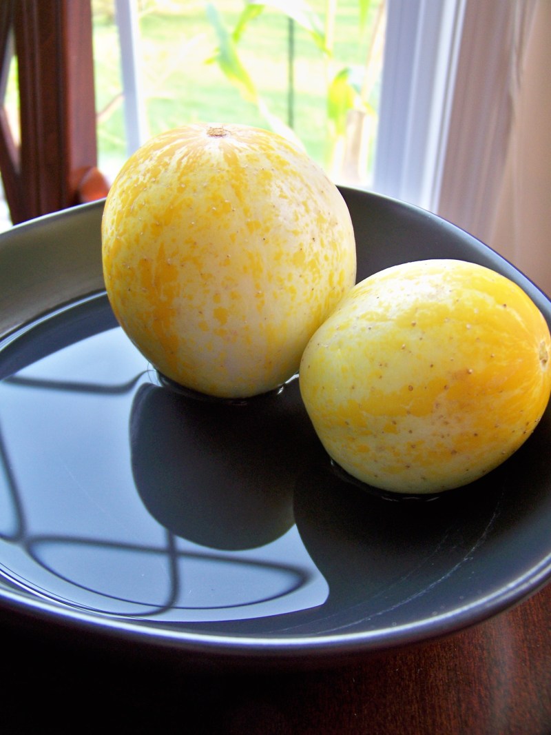 This one is short and sweet. I thought you might find them interesting as well. Pretty, round, yellow, still stubby like a long green cucumber is, and supposedly sweetish.