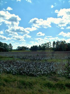Next, we drove by cotton field after cotton field. All I really wanted to do was get out and grab some…but, I behaved. The scenery was absolutely gorgeous. The sun was shining, and the perfect clouds were in the sky. Do you think God uses Photoshop?
