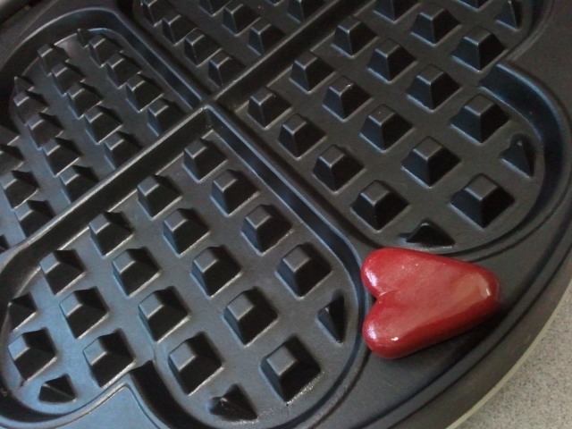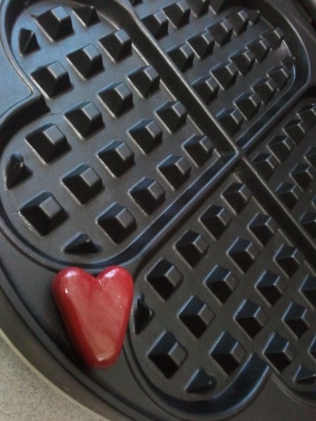 me on Facebook (which you need to *wink*), I wanted to make sure you were able to see it. In true Onyx Plate loving style…I ended up with heart shaped Pecan Peanut Butter Waffles topped with local strawberries and pecans. The strawberries were frozen from last year’s crop that Mom and I picked, and the pecans are from family friends.
