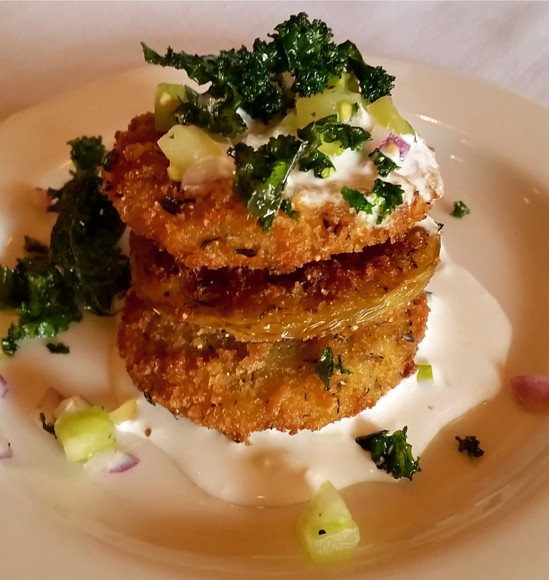 My Stepdad ordered the Fried Green Tomatoes with a buttermilk cucumber, green tomato relish, and crispy greens. He said the greens were so soaked in grease, it was hard to enjoy them. However, they were indeed fried, and we came to the conclusion that maybe that’s the only way some people can eat healthy greens…fried. The dish was perfect otherwise.