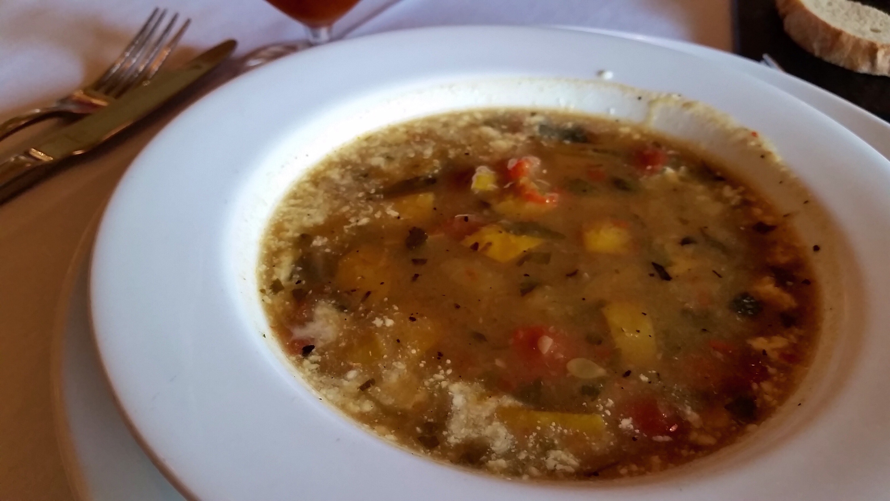 I ordered the Grilled Summer Squash Soup as my starter with charred peppadew peppers, and a sweet corn crem fraiche – No, I didn’t shake it up or stir it before taking the photo. It was presented this way. You eat with your eyes first, and although this ended up tasting decent, it certainly wasn’t plated well. A little bit of a let down for as amazing as this place normally is.
