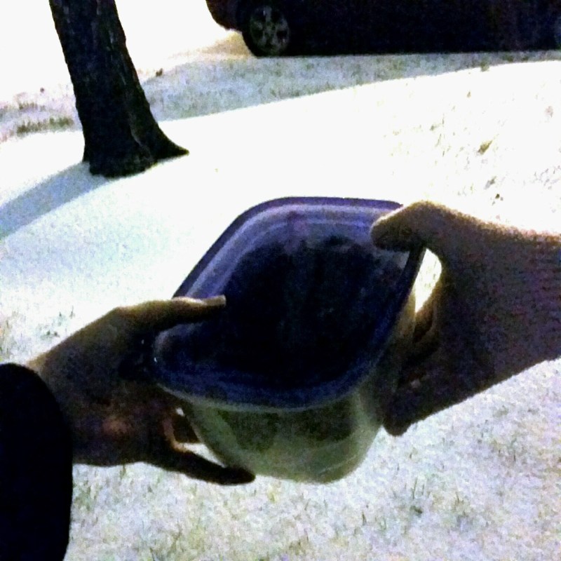 After the cookies were made, and it had snowed and continued to sleet the entire day, we met once again in the cold. This time, I was sharing cookies with the neighbor and new friend that was kind enough to be neighborly with her ingredients. Warming souls on snow days…it’s a good thing.
